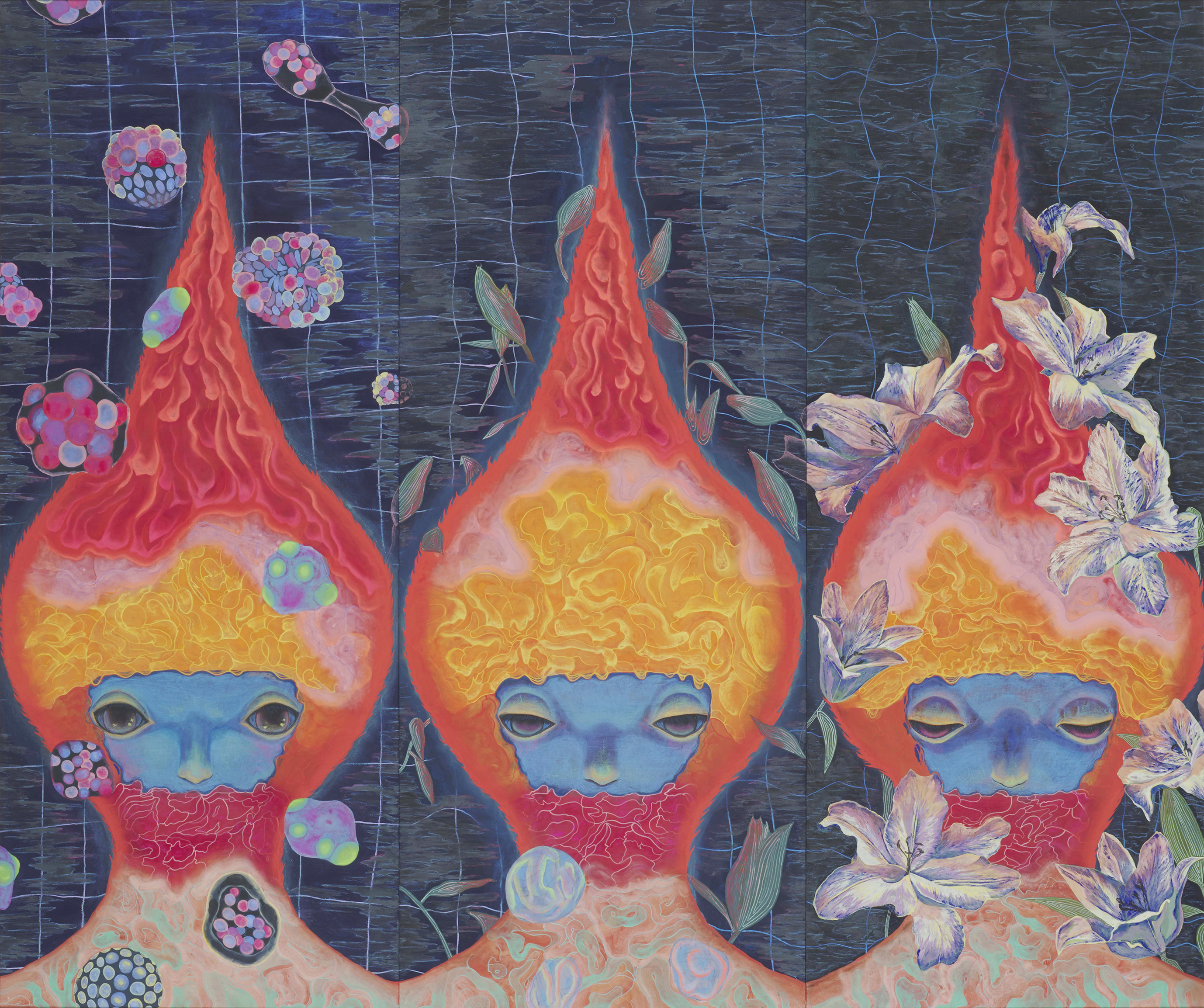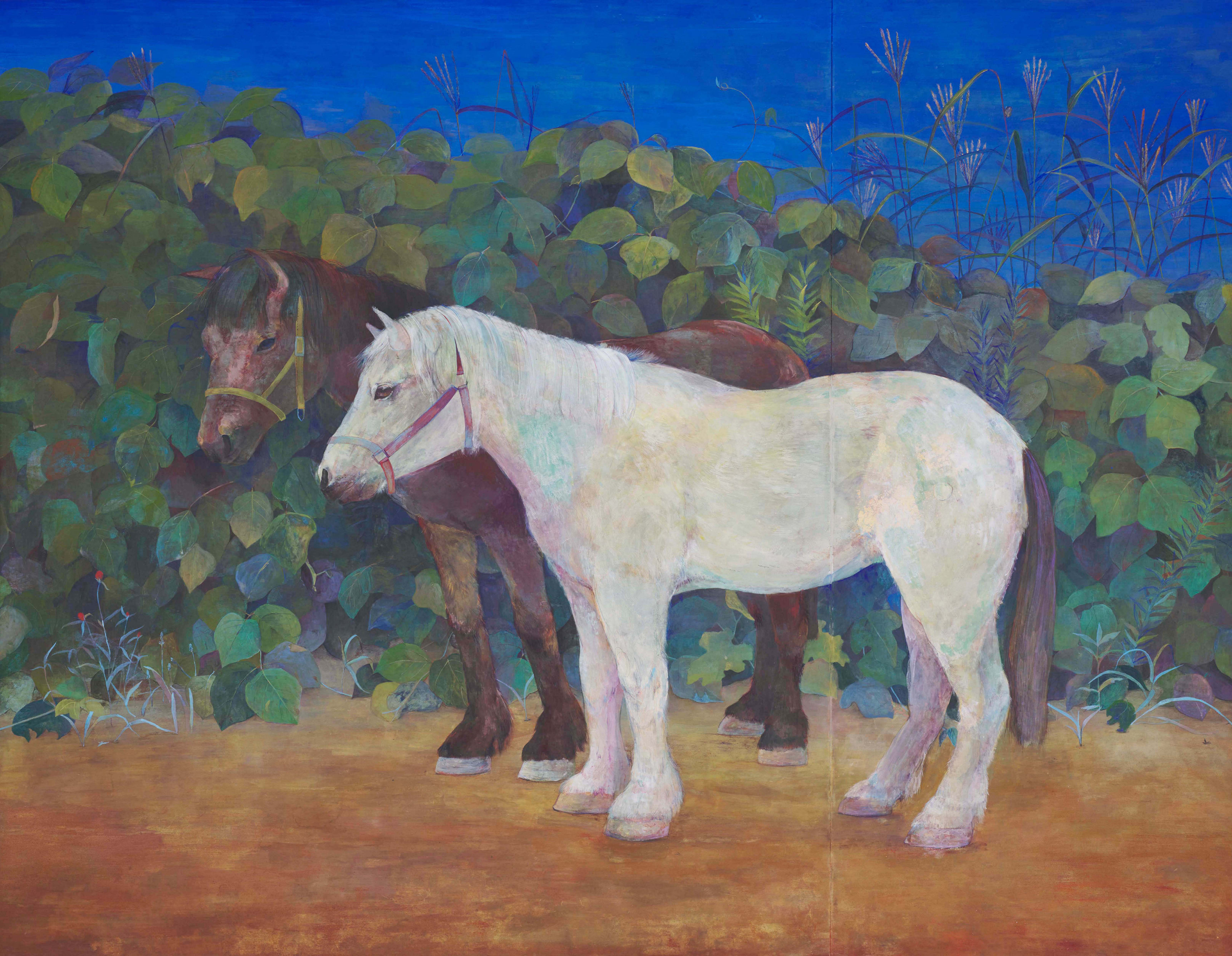 日本独自の美意識の中で育まれてきた日本画。その魅力は、多くの自然素材を用いることで生み出される日本の自然観、精神観を映し出した、豊かな表現にあります。本専攻では、日本画に欠かせない描写力、構成力を高めながら、和紙、岩絵具、筆、表具、箔などの伝統的な材料を使いこなすことを基本としています。伝統を踏まえながら、学生一人ひとりの自由で現代的で、豊かな感性に根ざした日本画を追究していきます。