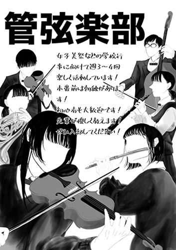 女子美らしいクラブ活動、それぞれの部活紹介ポスターは生徒たちの作品です。ぜひご覧ください。
