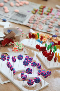 これがすべてのスタートです。企画のプレゼンが成功したクラスが女子美祭における発表の機会を得て、具体的な準備に取り掛かます。残念にも落選してしまったクラスにも、校舎をいろどる装飾を担当する企画に、リベンジの機会があります。あれもこれもすべては来場される方々に驚きと楽しさを味わっていただくため。創造することのすばらしさを感じていただくため。