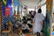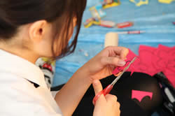「女子美祭」に向けて、女子美生は約半年前から準備を始めています。授業課題の発表やクラブの発表はもちろんですが、本校では「クラスによる教室展示」という企画があります。これは、中1から高3の各クラスが、日頃の成果を「教室展示(お化け屋敷や迷路、ロールプレイングゲームといったアトラクションを手作りします)」という形で発表するものです。教室の数は限られていますので、全てのクラスが「教室展示」できるわけではありません。面白く、楽しく、美しい、オリジナルの企画をたて、実現に向けて様々な試行錯誤を繰り返し、企画案を描きます。
