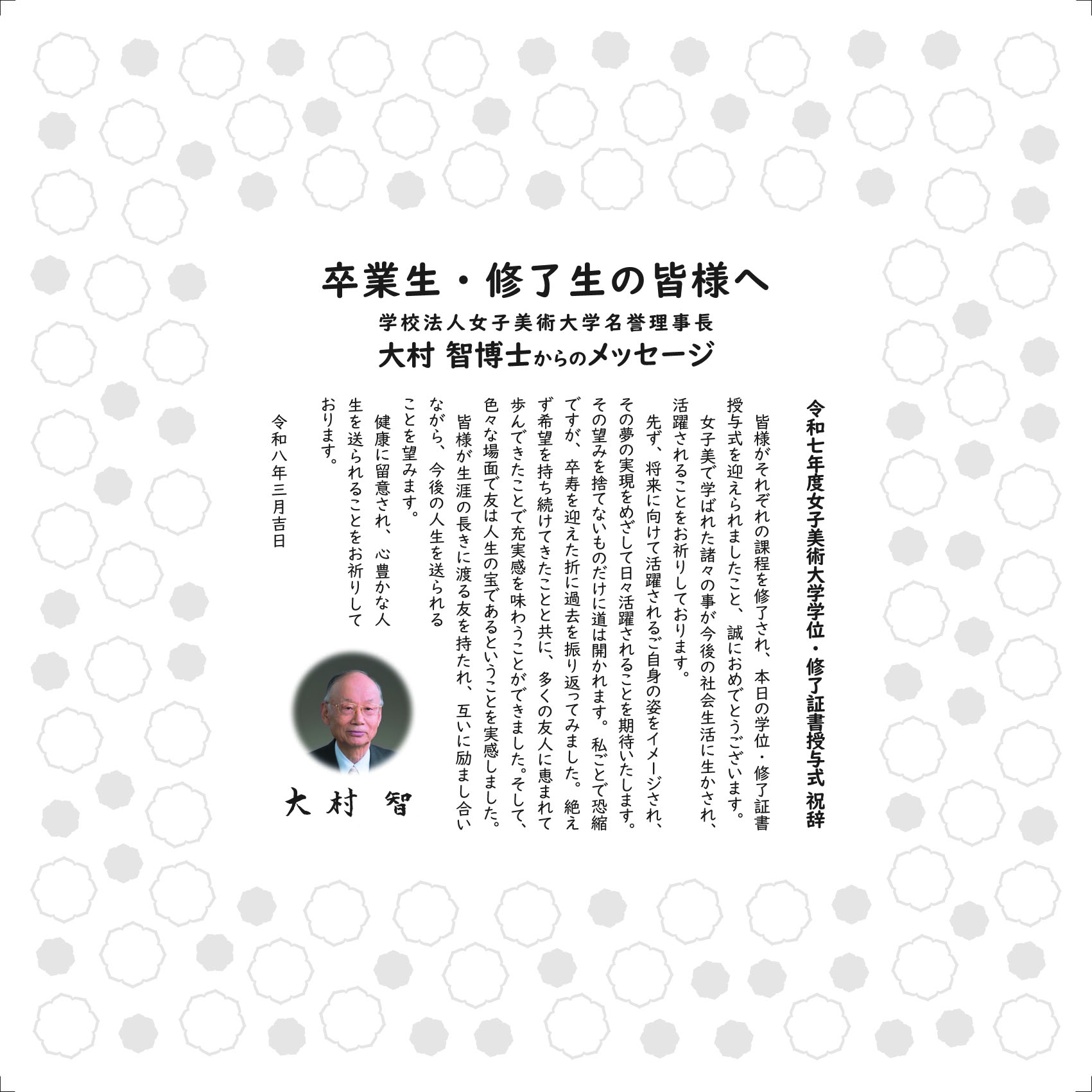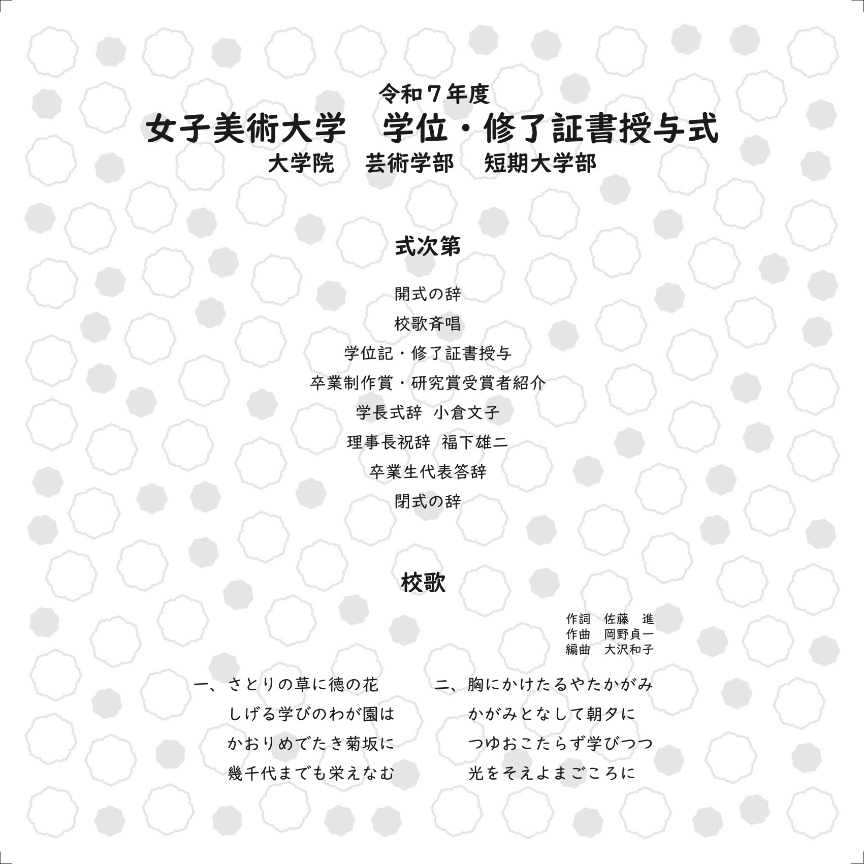 令和7年度女子美術大学・女子美術大学短期大学部学位・修了証書授与式については、各キャンパスの体育館で実施いたします。