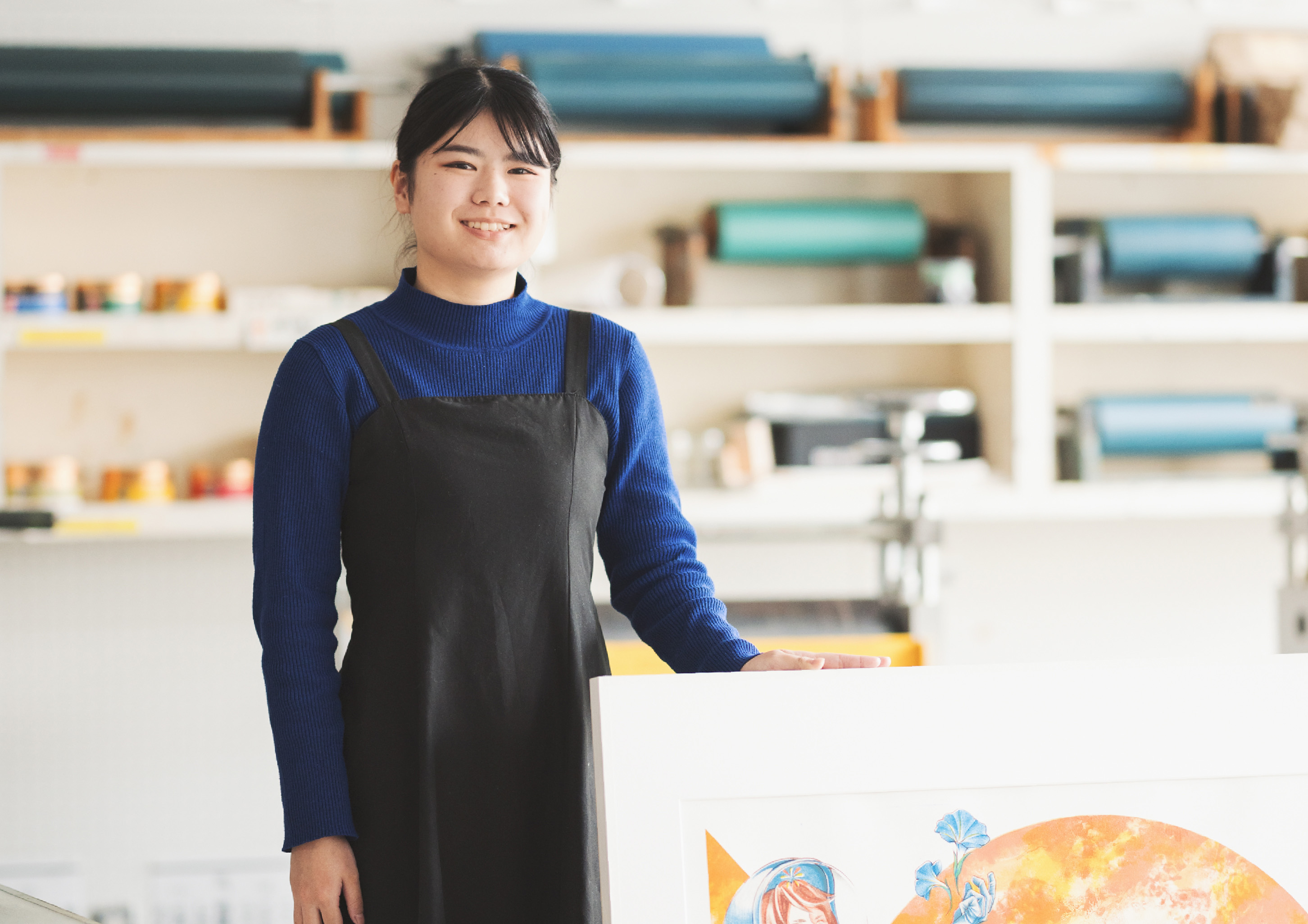油彩や日本画、版画、立体造形など、美術のさまざまな分野を横断しながら、それぞれの基礎的な知識や技術をしっかりと学びます。その中からひとつを掘り下げるのはもちろんのこと、いくつかを並行して突き詰めることもできる、自由度が高いコースです。絵画からインスタレーションに至る、アカデミックな表現からコンテンポラリーまで、幅広く総合的な表現力を身につけ、自分の「本当の好き」を見つける2年間。卒業後の進路も進学、アーティスト、漫画家、教員、ゲームクリエイターなど、幅広い分野で活躍できる人材を育成しています。
