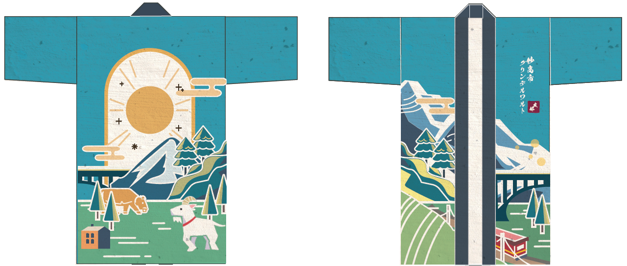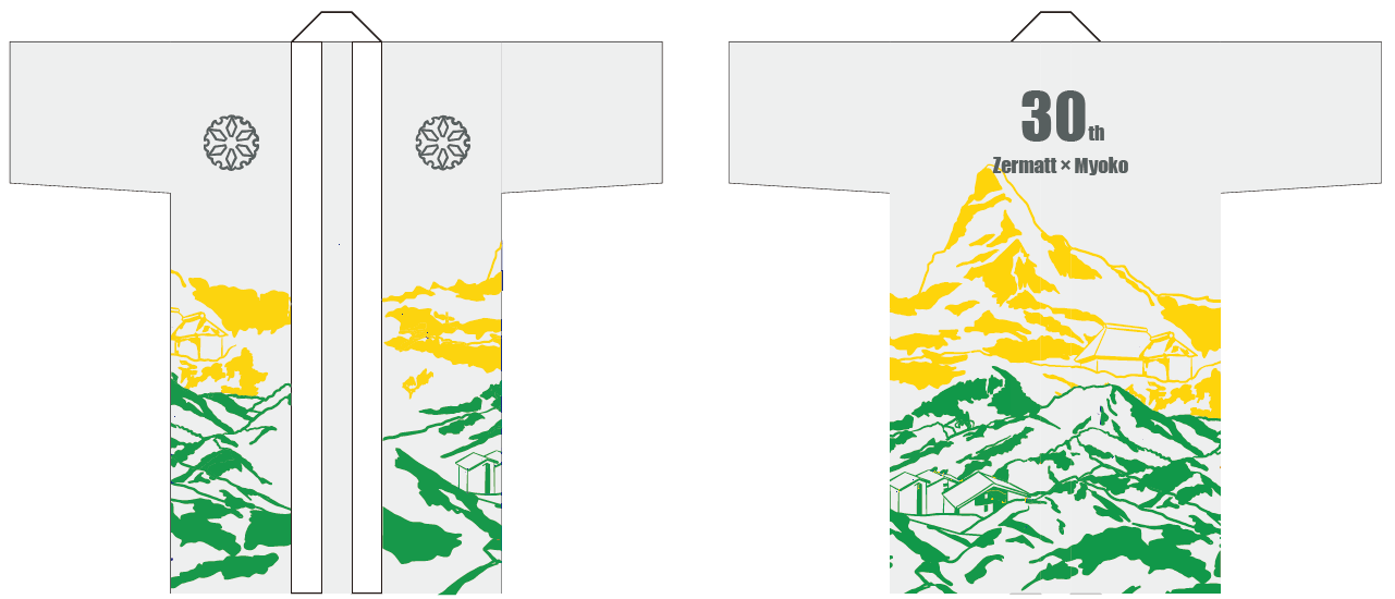 2027年に新潟県妙高市とスイスのツェルマット、グリンデルワルトとの姉妹都市締結30周年を記念して行われるイベントで使用される「法被(はっぴ)」のデザインを、本学共創デザイン学科の学生が担当しました。