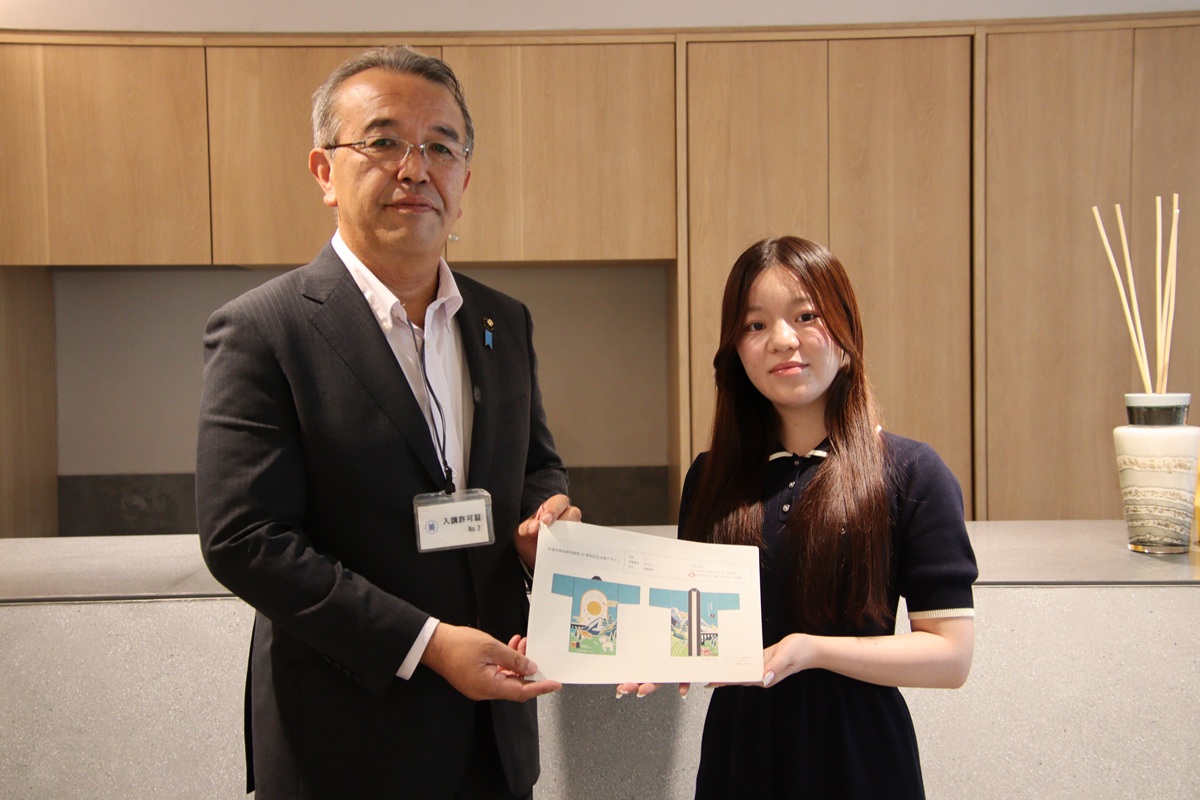 授賞式後には、採用デザインについて市長と学生が直接意見を交わし、来年度中の完成に向けて具体的な調整を進めることとなりました。