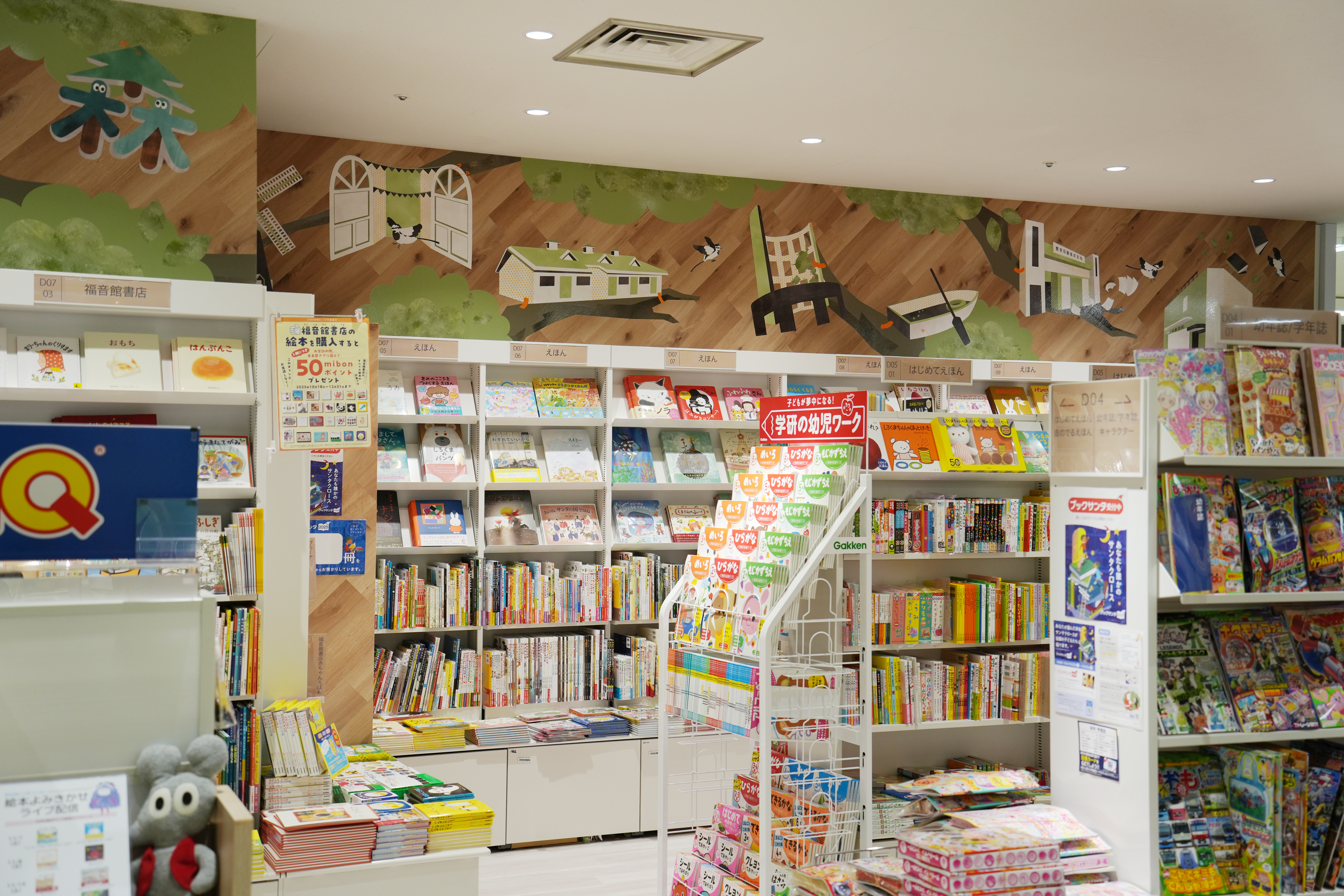 本プロジェクトでは、未来屋書店 板橋店の児童書売場「みらいやの森」の内装デザインを共同で開発しました。